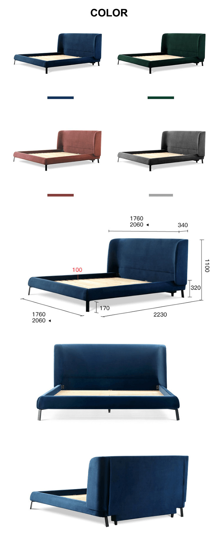 سرير R10 High-Grade Velvet Furniture Super Soft هو سرير من جلد الغزال برأس شبه مغلق وقاعدة معدنية صلبة وثابتة لتحسين سلامته. هذا المنتج متوفر بأربعة ألوان، واحد هو الأزرق.الأخضر والوردي والرمادي.